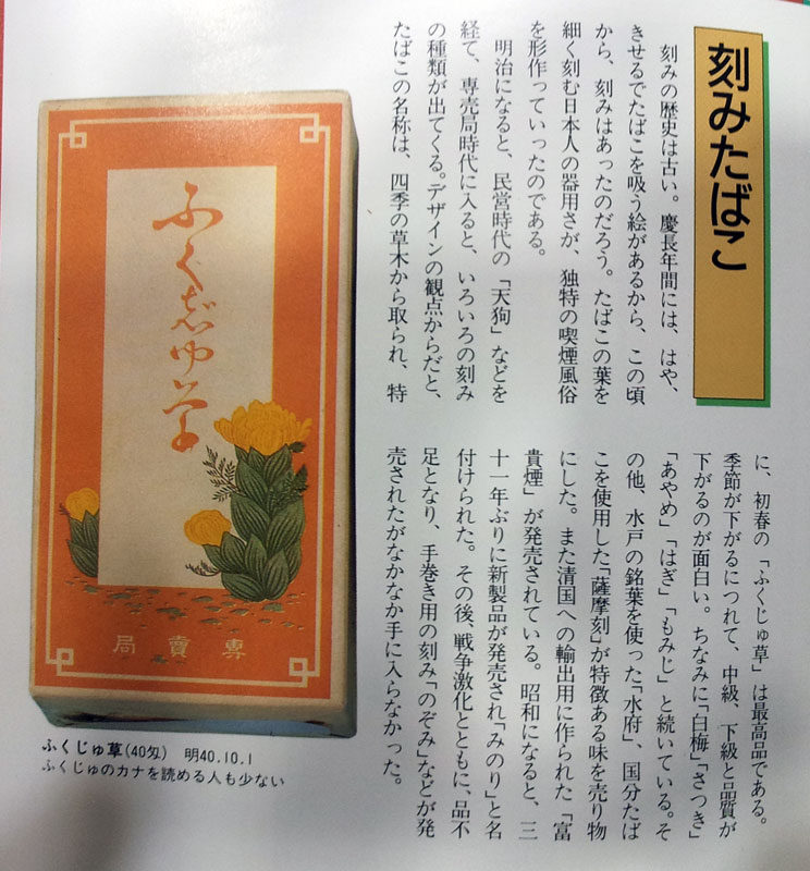 銘柄は「ふくじゅ草」。明治から昭和4年まで製造されていた刻みだ。